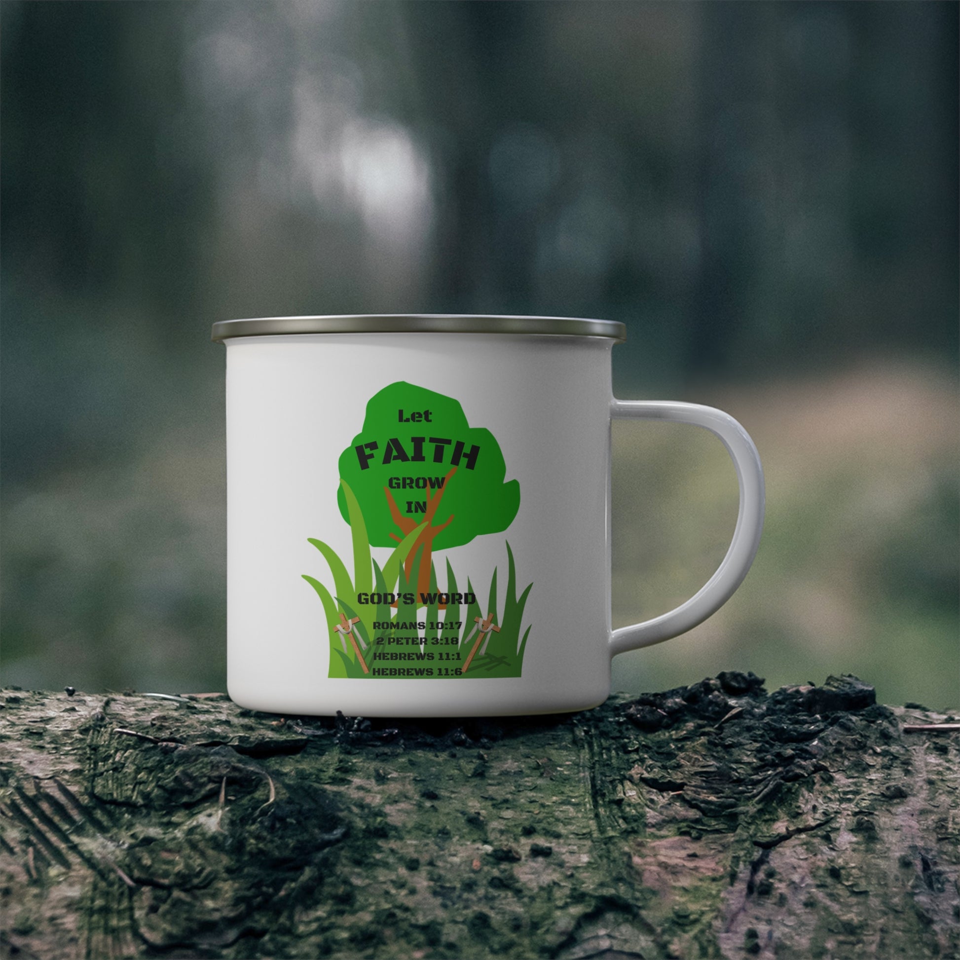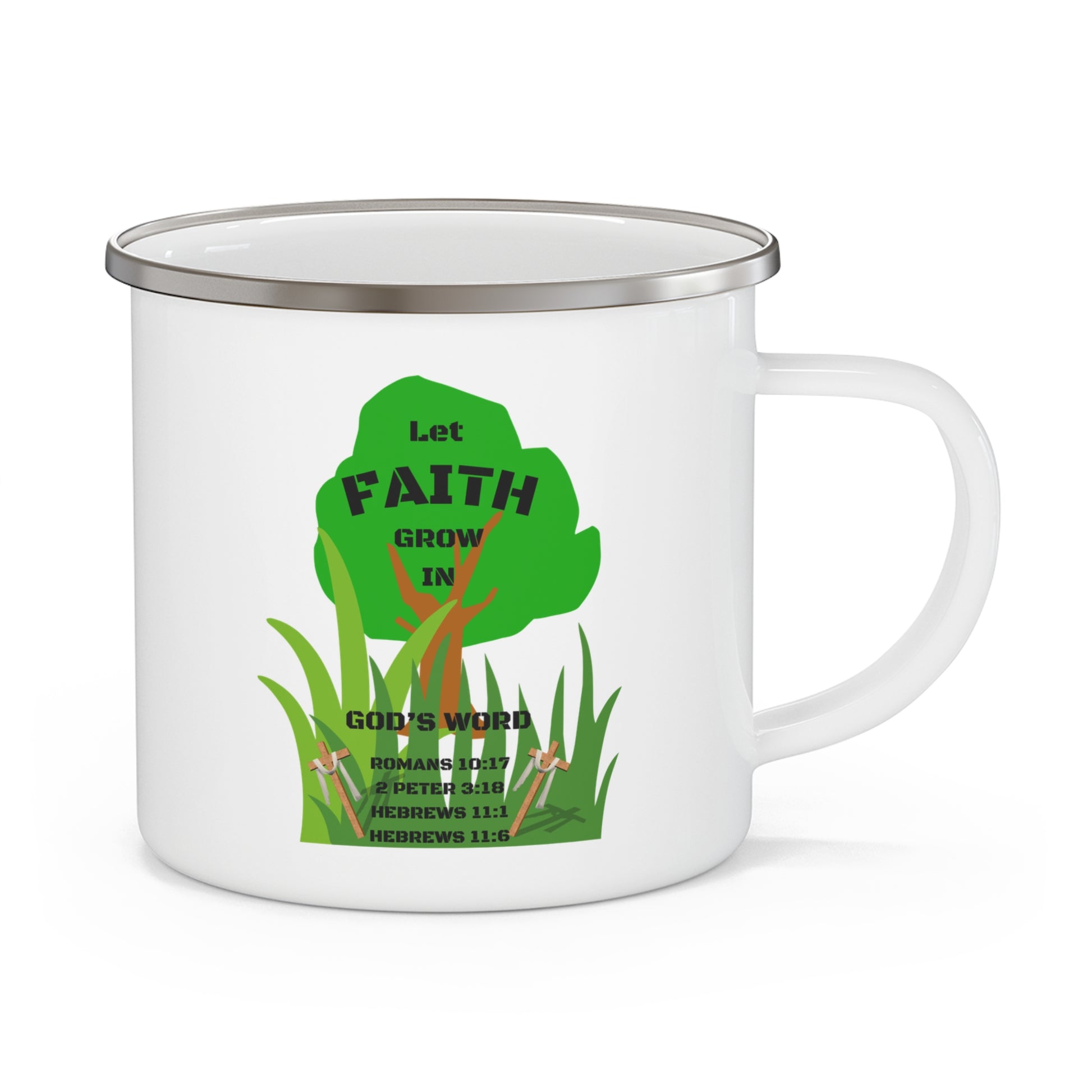 Taza de camping esmaltada "Deja que la fe crezca en la Palabra de Dios" de KT&T