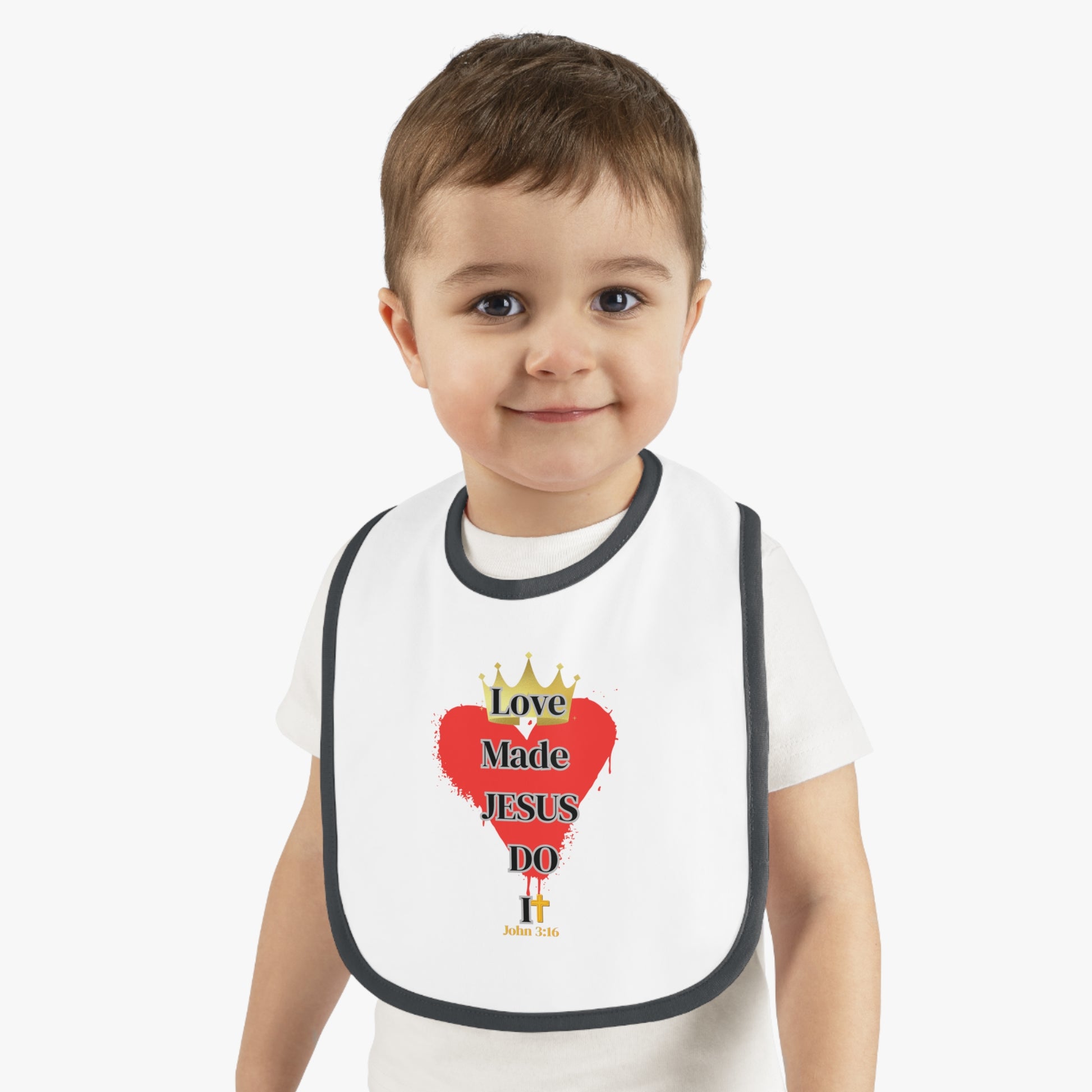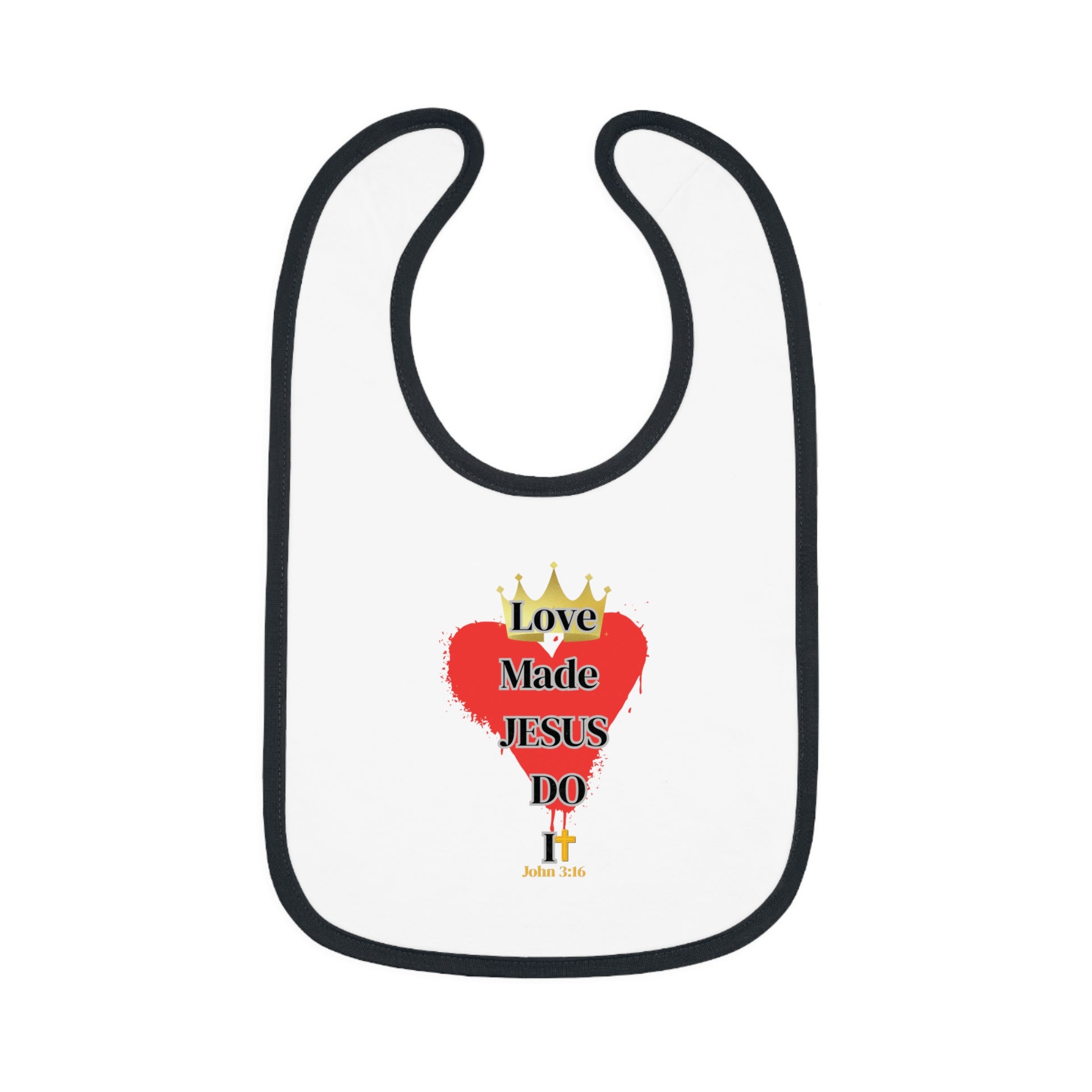 KT&T Love Made Jesus Do It Baby Contrast Trim Jersey Bib